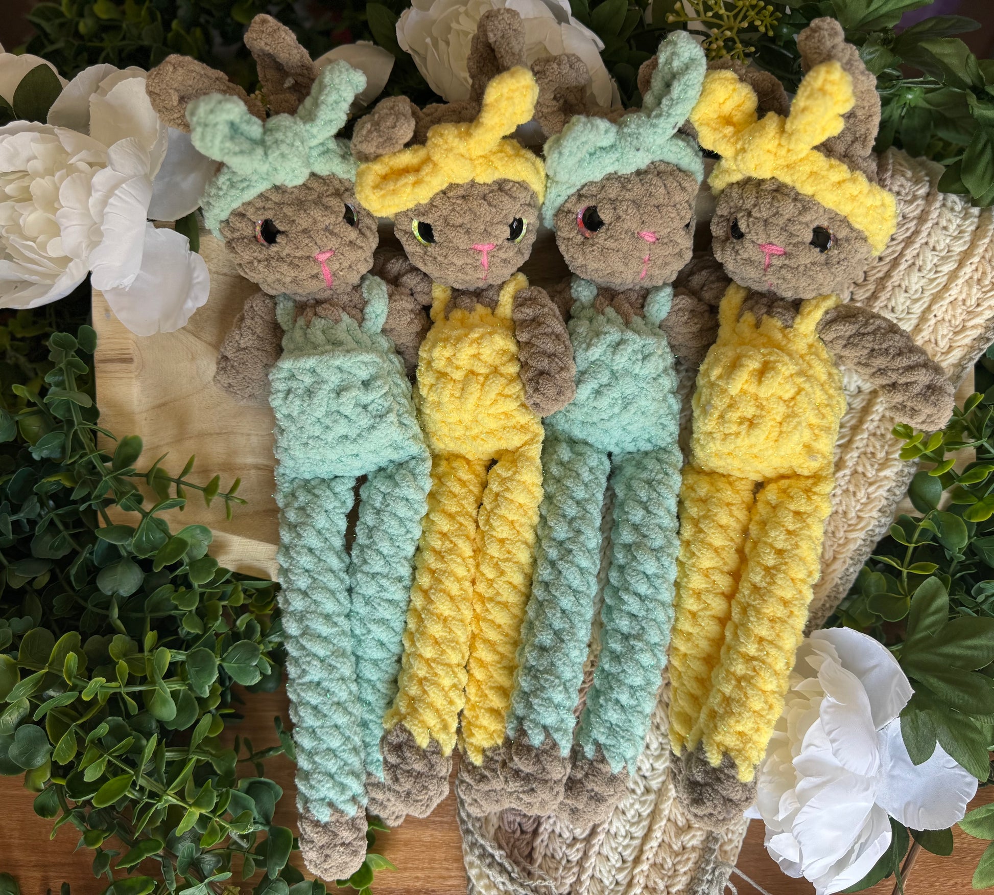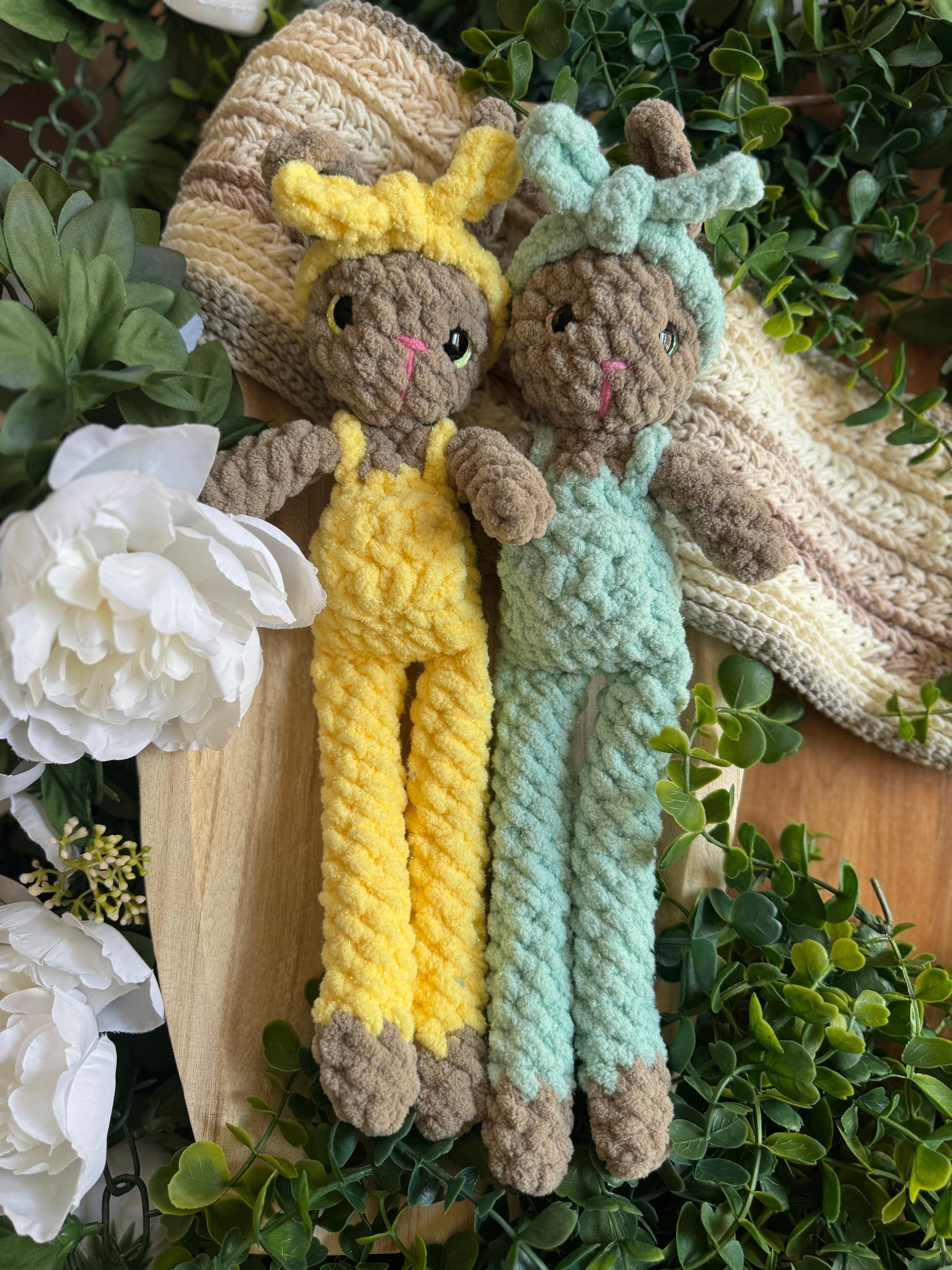 Meet Clover the Bunny, your new hoppy friend who's dressed to impress! This adorable crocheted companion sports the cutest pair of overalls complete with a tiny front pocket (perfect for hiding miniature carrot treasures!). Topping off the look is a charming headband that gives Clover that extra bounce of personality. Snuggle-ready and adventure-bound, this little bunny can't wait to hop into your heart and home!