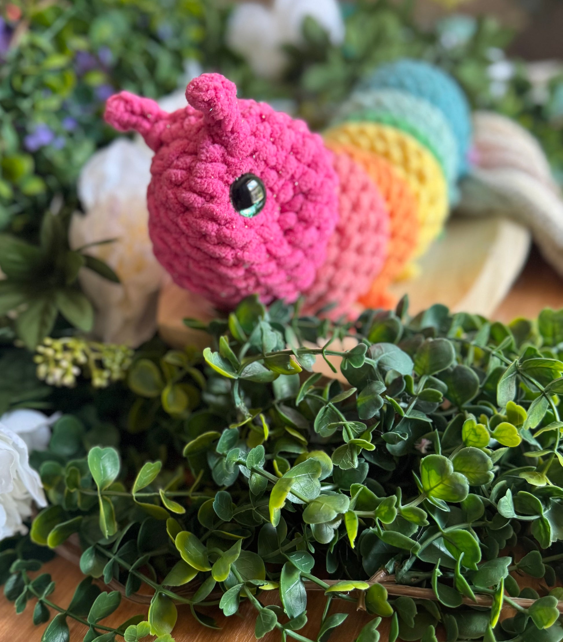 Wiggle, squirm, and play with Cosmo the Large Caterpillar! This charming crochet companion features an articulated body that bends and poses in countless ways. Perfect for imaginative play, cuddling, or adding a touch of whimsy to any room. Each colorful segment is lovingly handcrafted to create a playful friend that's sure to crawl right into your heart!
